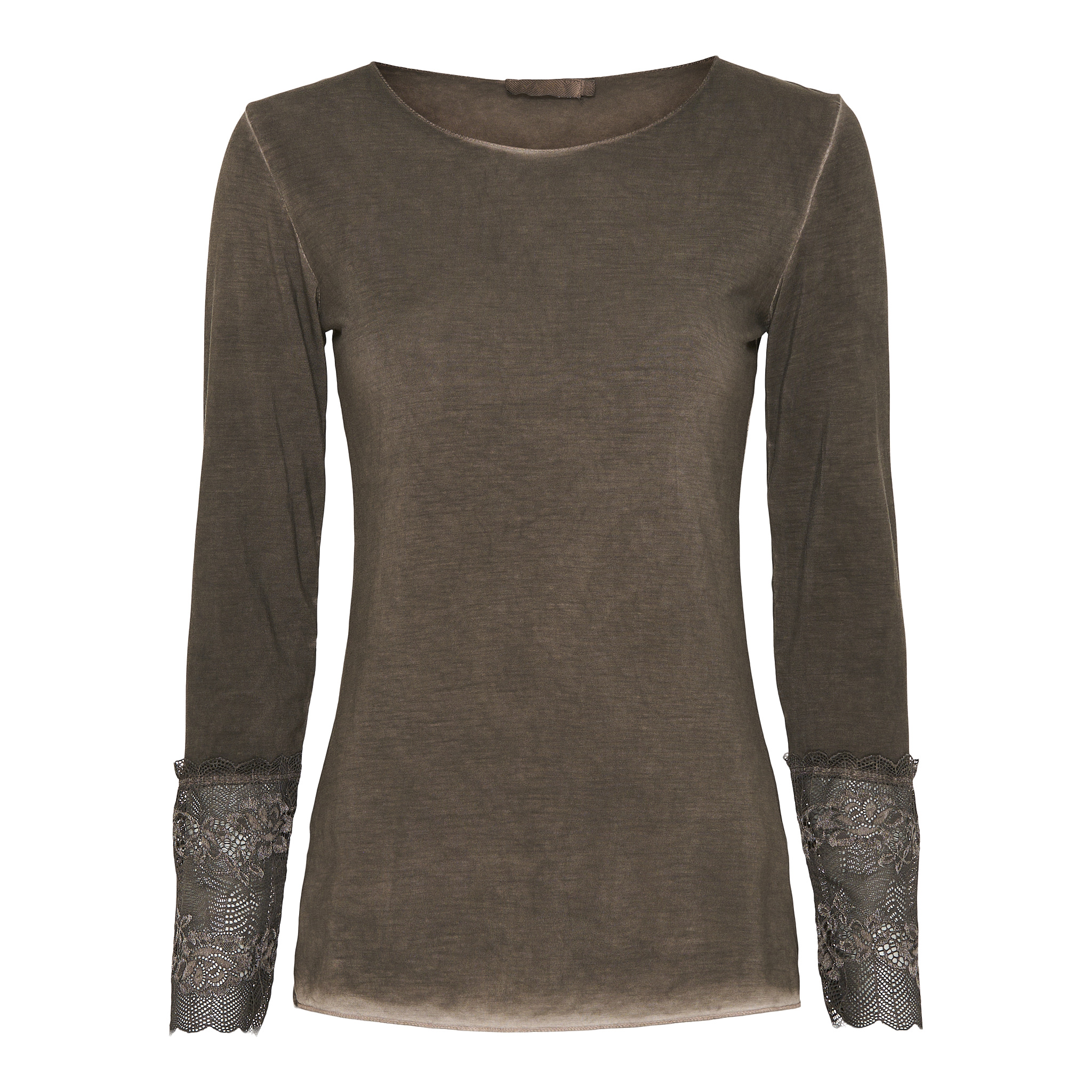 De fina spetsdetaljerna vid ärmsluten (ca 15 cm spets) ger ett romantiskt och kvinnligt uttryck – lika fin till jeans som till kjol.